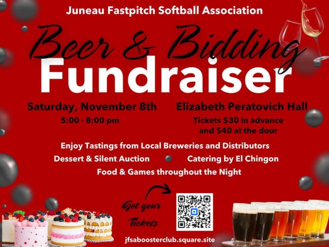 Come enjoy of evening of fun while supporting High School Softball in Juneau! Our booster club, Juneau Fastpitch Softball Association is hosting our annual Beer and Bidding Fundraiser. You can enjoy beer and wine tastings from local breweries and distilleries while having delicious appetizers from El Chingon. Throughout the night we will have a live dessert auction as well as a silent auction with items donate by local businesses.