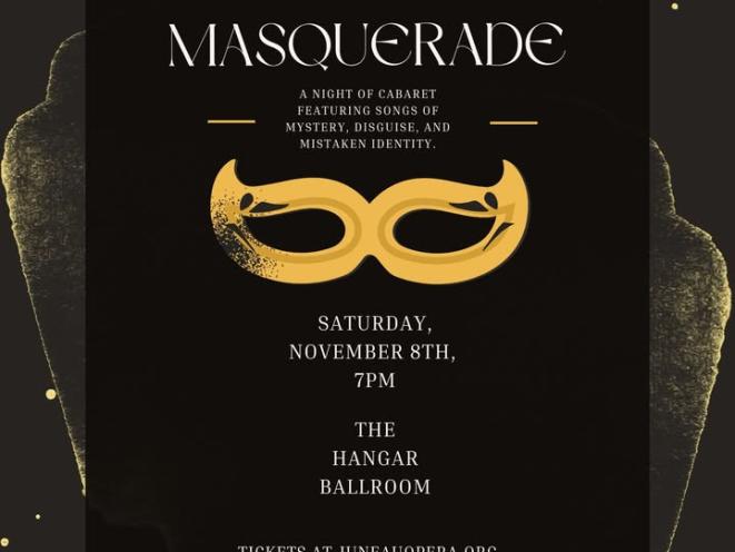 Juneau Lyric Opera presents "Masquerade", a night of cabaret featuring songs of mystery, disguise, and mistaken identity.