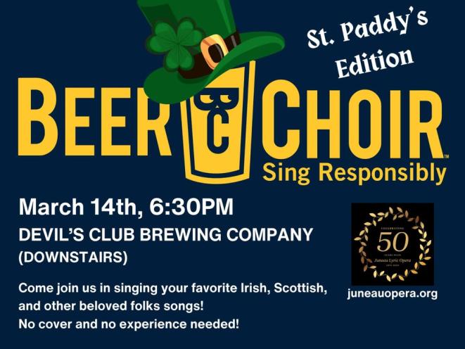 Come join Juneau Lyric Opera for a special St. Paddy's themed Beer Choir! This will be a sing-a-long celebration of Irish, Scottish, and other beloved folk songs!